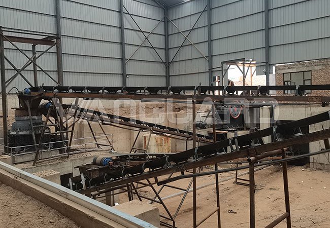 客户生产线位于河滩边缘,制砂原料主要是河滩上的河卵石和鹅卵石。这些材料硬度较高,大小不一,较终确定方案需先用鄂式破碎机进行粗破,再由圆锥破进行中破和细破。由于圆锥破碎机具有根据磨料情况自行调整排料口大小的功能,特别适用于对已经经过粗破的石料进行初步的大小一致化处理,这种操作对于圆锥破来说较为擅长。