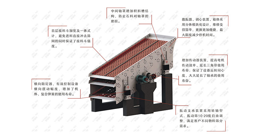 激振器、调心装置、箱体采用分体模块化设计,维修变得简单,更换更加便捷,大大减少停机时间;