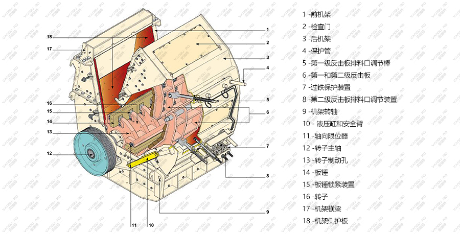 开线型腔型设计使物料垂直击打到反击板上,物料在板锤作用区内向入料口方向返料,增加击打次数,破碎效率得到显著提升,出料粒型更好。
