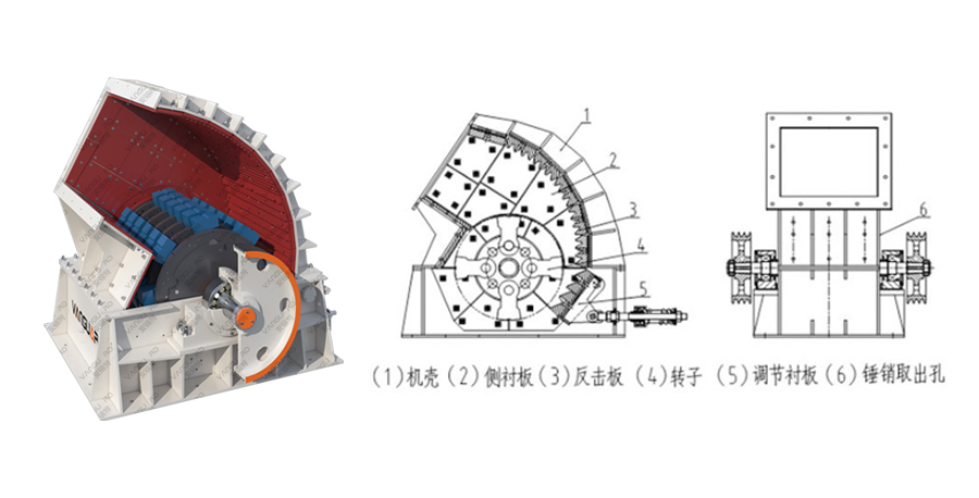 改变了以往篦条控制出料颗粒大小的方式,用扳手调节螺栓即可完成粒度调节,大块物料主动避让,减少设备损伤,减少锤头在破碎腔内的磨损,使锤头的寿命提高4—6倍。