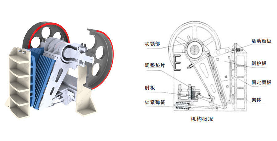该颚式破碎机结构采用深V破碎腔设计,腔深但却无死区,物料在破碎腔内不会发生堵料现象,可有效提高生产效率。