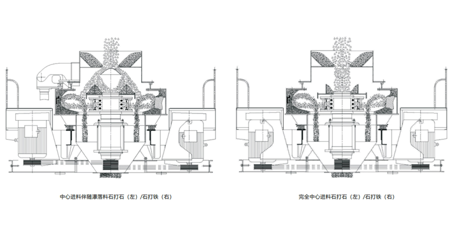 VSI制砂机(高效立轴冲击式破碎机)独有的进料破碎结构,拥有多种破碎腔型,可以很方便的实现石打石和石打铁的转换,从而解决了一机多用的难题,可适应用户的不同需求。